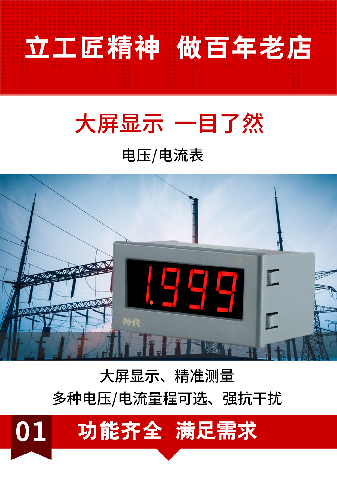 虹潤公司是專業(yè)生產(chǎn)數(shù)字電壓表的國家專精特新“小巨人”企業(yè)。生產(chǎn)的電壓/電流表,具有大屏LED顯示,交直流電壓/電流輸入,免設(shè)置易接線,性價比高等特點。產(chǎn)品獲得一種交流信號變送器、交直流信號轉(zhuǎn)換電路、基于DCS技術(shù)的盤裝式三相電量表等3項國家發(fā)明專利,主持起草現(xiàn)場設(shè)備集成等5項智能制造國家標準,物聯(lián)網(wǎng)電流變送器規(guī)范、物聯(lián)網(wǎng)總體技術(shù)智能傳感器特性與分類等2項國家標準,以及直流漏電流傳感器規(guī)范、通信系統(tǒng)多通道數(shù)據(jù)采集控制終端規(guī)范等2項軍用標準,參與國際5G標準制定。產(chǎn)品廣泛應(yīng)用于電力系統(tǒng)、工業(yè)制造、自動化設(shè)備、計量檢測等各種工業(yè)領(lǐng)域。