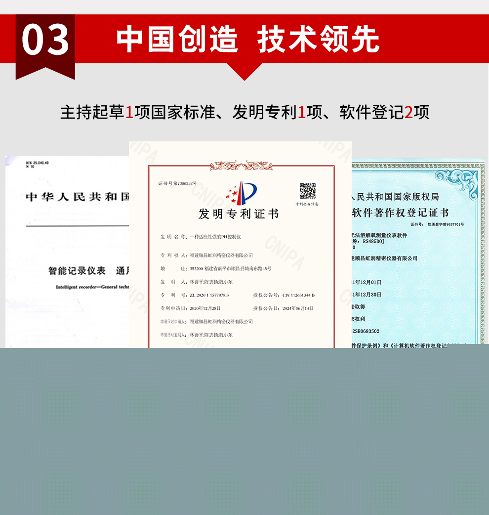 虹潤(rùn)公司是專業(yè)生產(chǎn)水質(zhì)分析儀的國(guó)家專精特新“小巨人”企業(yè)。生產(chǎn)的熒光法溶解氧控制器,具有采用熒光法測(cè)量,中英文菜單切換 ,溫度、壓力、鹽度三重補(bǔ)償,標(biāo)配報(bào)警、變送、RS485通訊等特點(diǎn)。產(chǎn)品獲得產(chǎn)品獲得一種高精度在線溶解氧測(cè)量?jī)x表、智能化控制器等2項(xiàng)國(guó)家發(fā)明專利;主持起草現(xiàn)場(chǎng)設(shè)備集成等5項(xiàng)智能制造國(guó)家標(biāo)準(zhǔn),以及現(xiàn)場(chǎng)設(shè)備工具(FDT)接口規(guī)范、工業(yè)過(guò)程控制系統(tǒng)用模擬輸入兩位或多位輸出儀表、過(guò)程分析技術(shù)系統(tǒng)、液體熒光氧分析儀的性能表示等4項(xiàng)國(guó)家標(biāo)準(zhǔn);參與國(guó)際5G標(biāo)準(zhǔn)制定,取得溶解氧測(cè)量?jī)x表等2項(xiàng)相關(guān)軟件著作權(quán)。產(chǎn)品廣泛應(yīng)用于實(shí)驗(yàn)室、水處理、環(huán)境監(jiān)測(cè)、食品、制藥、農(nóng)業(yè)等諸多領(lǐng)域。