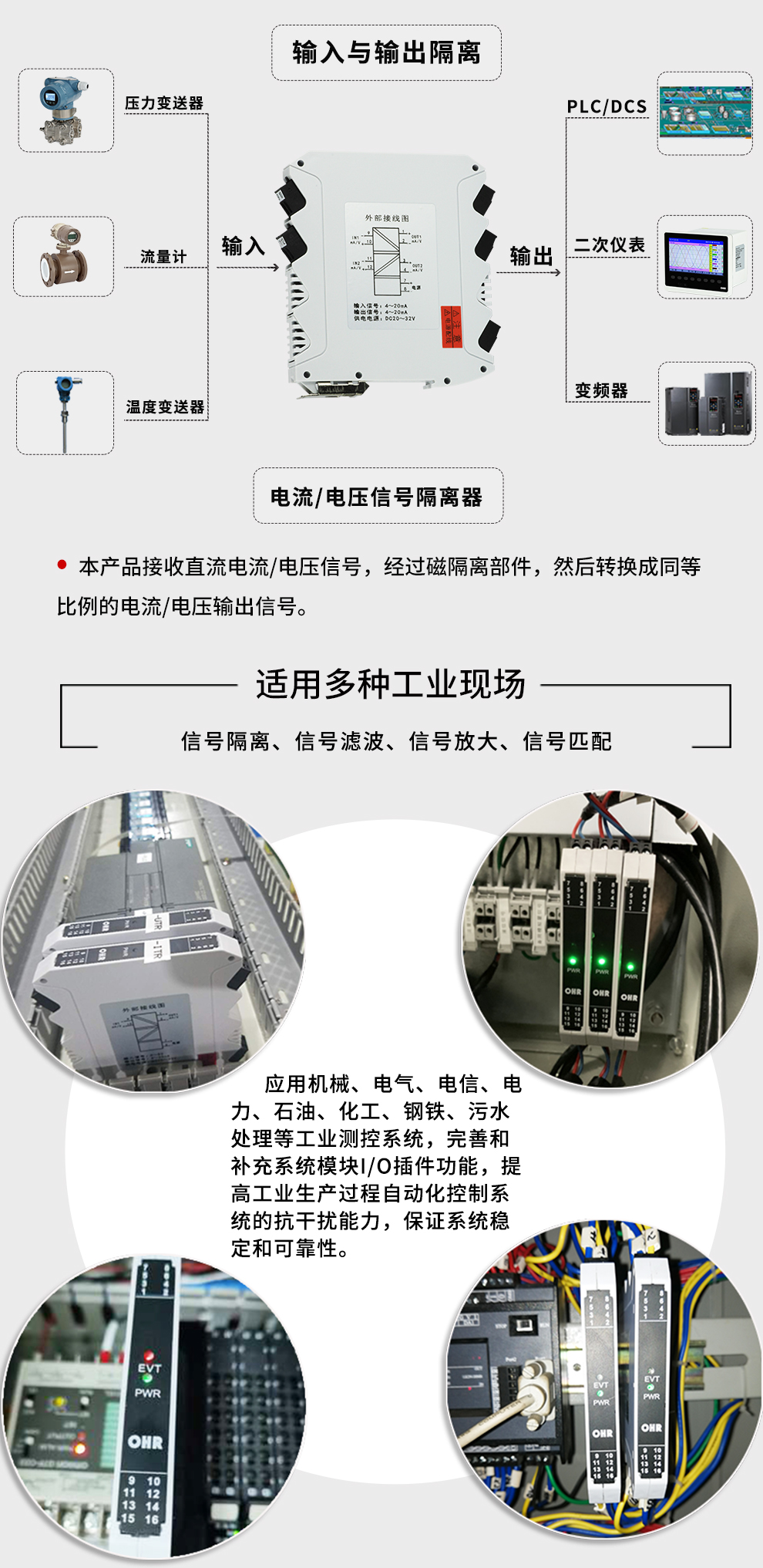 虹潤公司是專業(yè)生產(chǎn)隔離器的國家專精特新“小巨人”企業(yè)。生產(chǎn)的信號(hào)隔離器,具有采用磁隔離技術(shù),直流電壓/電流輸入,響應(yīng)時(shí)間快,抗干擾能力強(qiáng),性價(jià)比高等特點(diǎn)。該產(chǎn)品不僅通過德國萊茵 CE 認(rèn)證與 SIL 功能安全認(rèn)證,還獲得信號(hào)隔離器、二端子模塊、無源信號(hào)隔離器等3項(xiàng)國家發(fā)明專利,主持起草現(xiàn)場設(shè)備工具(FDT)接口規(guī)范、工業(yè)過程測量和控制系統(tǒng)用隔離式安全柵、工業(yè)過程測量和控制系統(tǒng)用配電器等3項(xiàng)國家標(biāo)準(zhǔn),以及通信系統(tǒng)多通道數(shù)據(jù)采集控制終端規(guī)范軍用標(biāo)準(zhǔn),參與國際5G標(biāo)準(zhǔn)制定。產(chǎn)品廣泛應(yīng)用于石油、電力、化工,冶金、制藥、污水處理、窯爐控制等各種需要電隔離的工業(yè)現(xiàn)場。