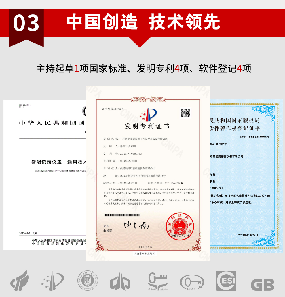 虹潤公司是專業(yè)生產(chǎn)水質(zhì)分析儀的國家專精特新“小巨人”企業(yè)。生產(chǎn)的水質(zhì)多參數(shù)監(jiān)測記錄儀,具有多參數(shù)采集同屏顯示,數(shù)據(jù)記錄與轉(zhuǎn)存,支持WiFi或4G實現(xiàn)數(shù)據(jù)云方案,內(nèi)置與外配組態(tài)軟件等特點。產(chǎn)品獲得一種適應(yīng)性強PH控制儀、嵌入式數(shù)據(jù)采集工作站、數(shù)據(jù)采集控制工作站、無紙記錄儀、智能化控制器等5項國家發(fā)明專利;主持起草通信系統(tǒng)多通道數(shù)據(jù)采集控制終端規(guī)范軍用標(biāo)準(zhǔn),物聯(lián)網(wǎng)智能記錄儀表通用技術(shù)條件國家標(biāo)準(zhǔn),以及現(xiàn)場設(shè)備集成等5項智能制造國家標(biāo)準(zhǔn),參與國際5G標(biāo)準(zhǔn)制定;取得PH無紙記錄儀等7項相關(guān)軟件著作權(quán)。產(chǎn)品廣泛應(yīng)用于實驗室、水處理、環(huán)境監(jiān)測、食品、制藥、農(nóng)業(yè)、工業(yè)流程控制等諸多領(lǐng)域。