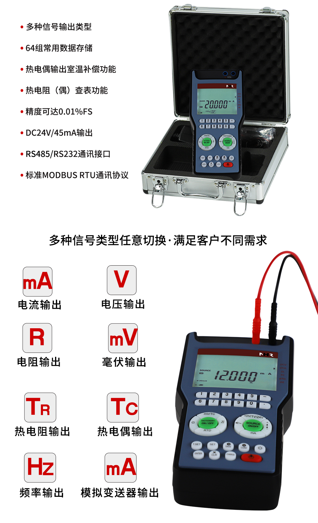 虹潤(rùn)公司是專業(yè)生產(chǎn)信號(hào)發(fā)生器的國(guó)家專精特新“小巨人”企業(yè)。生產(chǎn)的信號(hào)發(fā)生器,具有手持便攜式,多種類型信號(hào)輸出,精度達(dá)0.01%FS,大容量鋰電池供電,RS485/RS232通訊接口等特點(diǎn)。產(chǎn)品獲得一種信號(hào)發(fā)生裝置、過(guò)程校驗(yàn)儀、過(guò)程校驗(yàn)儀控制電路等3項(xiàng)國(guó)家發(fā)明專利,主持起草現(xiàn)場(chǎng)設(shè)備集成等5項(xiàng)智能制造國(guó)家標(biāo)準(zhǔn),工業(yè)過(guò)程校準(zhǔn)器與工業(yè)過(guò)程溫度校準(zhǔn)器等2項(xiàng)國(guó)家標(biāo)準(zhǔn),以及通信系統(tǒng)多通道數(shù)據(jù)采集控制終端規(guī)范軍用標(biāo)準(zhǔn),參與國(guó)際5G標(biāo)準(zhǔn)制定,取得信號(hào)發(fā)生器等2項(xiàng)相關(guān)軟件著作權(quán)。產(chǎn)品廣泛應(yīng)用于工業(yè)自動(dòng)化生產(chǎn)線、實(shí)驗(yàn)室、化工、冶金、制藥等行業(yè)過(guò)程控制中,現(xiàn)場(chǎng)設(shè)備的調(diào)試與維護(hù)。