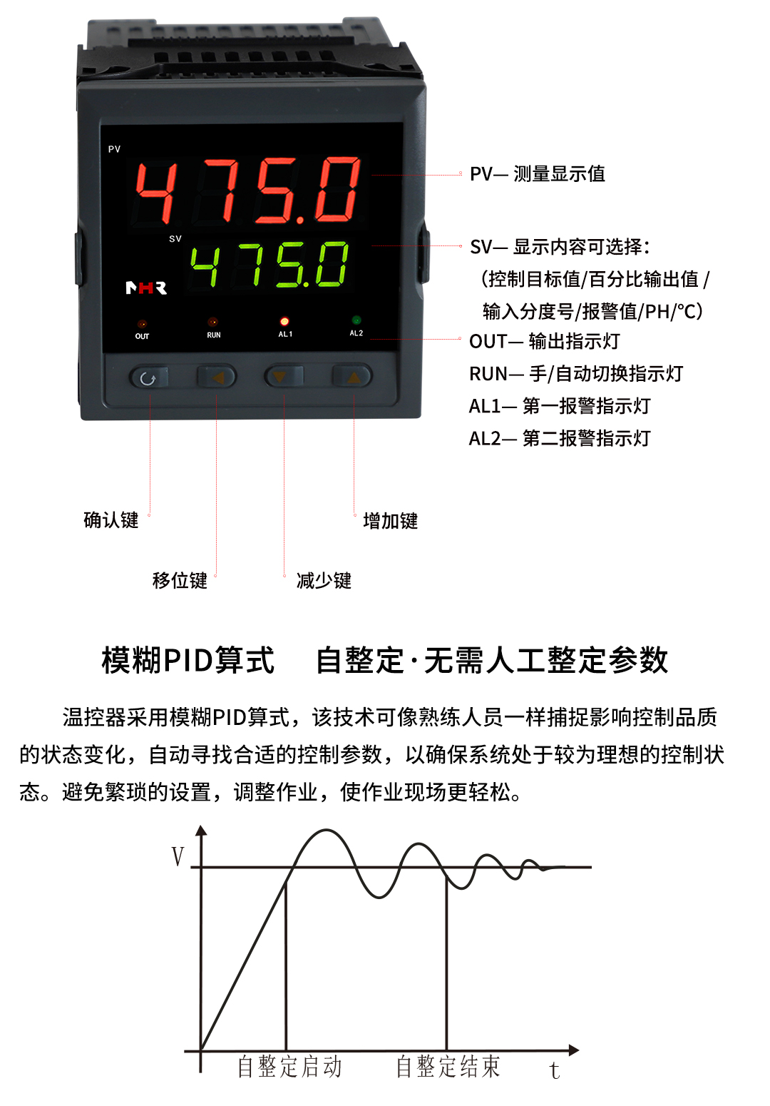 虹潤(rùn)公司是專業(yè)生產(chǎn)溫控器的國(guó)家專精特新“小巨人”企業(yè)。生產(chǎn)的傻瓜式智能溫控器,具有傻瓜式操作,真正人工智能算式,無需人工整定參數(shù),控制精度可達(dá)±0.1°C,高抗干擾等特點(diǎn)。產(chǎn)品獲得模糊PID控制儀及控制方法、人工智能調(diào)節(jié)器、智能化控制器、移相觸發(fā)控制器、閥門自動(dòng)手動(dòng)無擾動(dòng)操作控制方法及裝置等5項(xiàng)國(guó)家發(fā)明專利,主持起草工業(yè)過程控制系統(tǒng)用模擬輸入兩位或多位輸出儀表、物聯(lián)網(wǎng)智能溫度儀表通用技術(shù)條件、工業(yè)過程測(cè)量和控制系統(tǒng)用智能調(diào)節(jié)器等3項(xiàng)國(guó)家標(biāo)準(zhǔn),以及通信系統(tǒng)多通道數(shù)據(jù)采集控制終端規(guī)范軍用標(biāo)準(zhǔn),參與國(guó)際5G標(biāo)準(zhǔn)制定,取得傻瓜式模糊PID調(diào)節(jié)儀等3項(xiàng)相關(guān)軟件著作權(quán)。產(chǎn)品廣泛應(yīng)用于電力、石化,冶金、制藥、食品等幾乎所有工業(yè)現(xiàn)場(chǎng),實(shí)現(xiàn)精準(zhǔn)控溫,保障生產(chǎn)安全與質(zhì)量。
