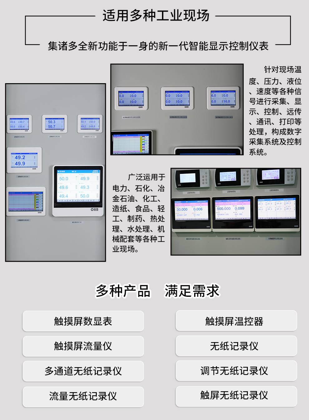 虹潤(rùn)公司是專業(yè)生產(chǎn)無紙記錄儀的國(guó)家專精特新“小巨人”企業(yè)。生產(chǎn)的觸摸屏溫控器,具有觸摸大屏顯示,真正人工智能算式,無需人工整定參數(shù),控制精度達(dá)士0.1°C, RS485/以太網(wǎng)通訊,5/7/9英寸可選等特點(diǎn)。產(chǎn)品獲得智能化控制器、人工智能調(diào)節(jié)器及調(diào)節(jié)方法、模糊PID控制儀及控制方法、平板無紙記錄儀、巡回檢測(cè)顯示方法及裝置等5項(xiàng)國(guó)家發(fā)明專利,主持起草物聯(lián)網(wǎng)智能記錄儀表通用技術(shù)條件、物聯(lián)網(wǎng)智能溫度儀表通用技術(shù)條件、工業(yè)過程測(cè)量和控制系統(tǒng)用智能調(diào)節(jié)器等3項(xiàng)國(guó)家標(biāo)準(zhǔn),通信系統(tǒng)多通道數(shù)據(jù)采集控制終端規(guī)范軍用標(biāo)準(zhǔn),以及空間數(shù)據(jù)與信息數(shù)據(jù)傳輸系統(tǒng)等2項(xiàng)航天標(biāo)準(zhǔn),參與國(guó)際5G標(biāo)準(zhǔn)制定,取得觸摸屏彩色調(diào)節(jié)無紙記錄儀等3項(xiàng)相關(guān)軟件著作權(quán)。產(chǎn)品廣泛應(yīng)用于電力、石化、冶金、化工、食品、制藥、熱處理、水處理、機(jī)械配套等諸多領(lǐng)域。